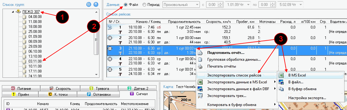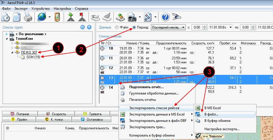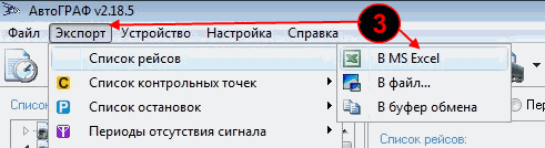 | 4. | выбираем "Экспортировать список рейсов" -> "В файл". |