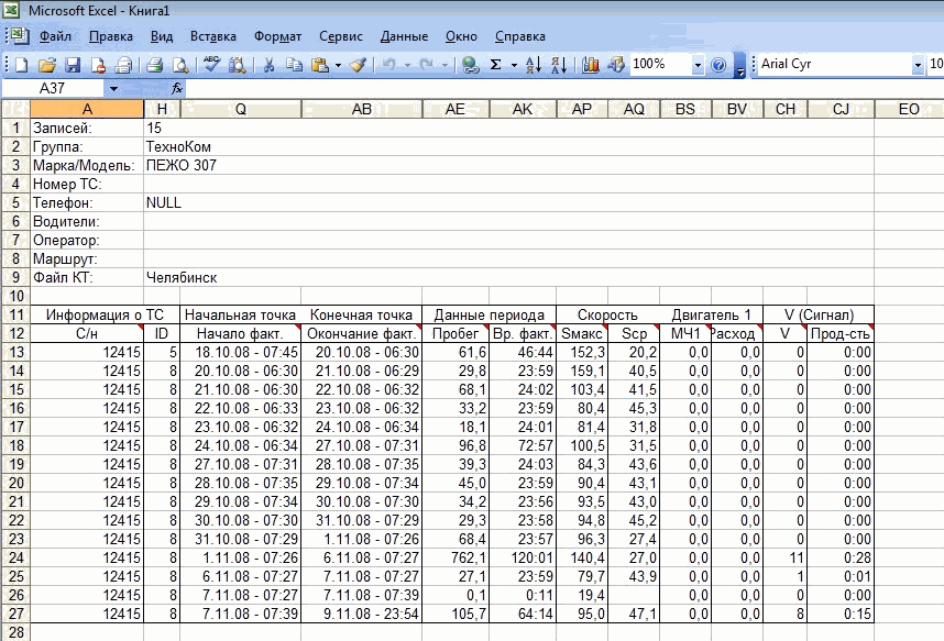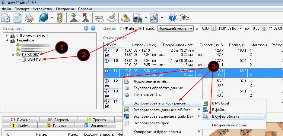 Список рейсов можно экспортировать в MS Excel, в файл или в буфер обмена.