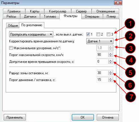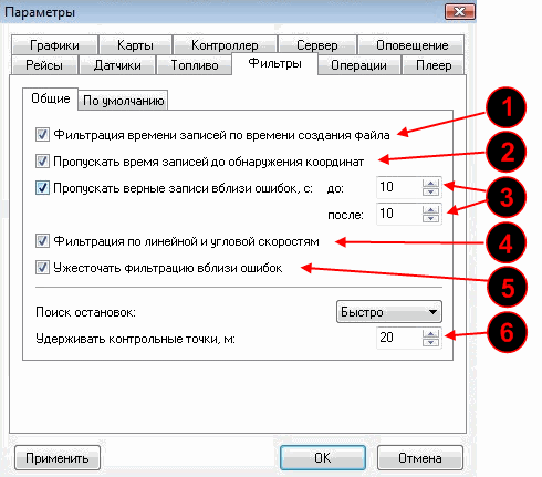 | 1. | Пропуск координат при выключенном зажигании или двигателе; |