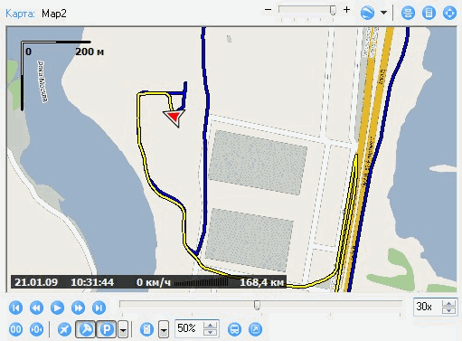 Теперь на карте четко видно когда бетономешалка работала, а когда была выключена: синим цветом трек отображается при включенном сигнале, а желтым - при выключенным;