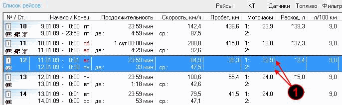Информация по каждому двигателю будет отображаться в строке рейсов и выводиться на печать в отчетах.
