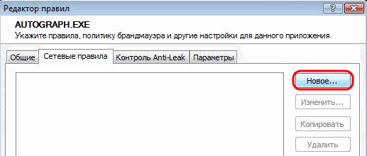 Выбираем вкладку "Сетевые правила" и нажимаем кнопку "Новое".