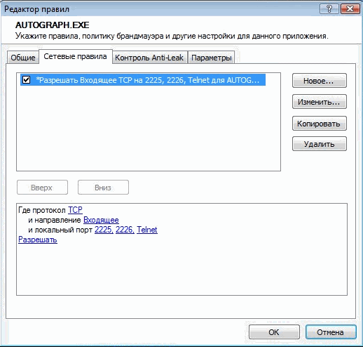 Настройка брэндмауэра Outpost Firewall для работы программы АвтоГРАФ |