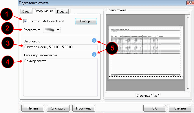Настройки оформления отчета находятся на вкладке "Оформление":