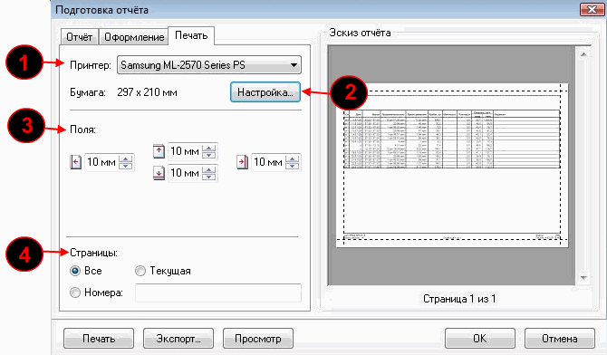Подготовка и печать отчетов.