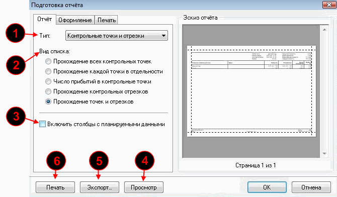 | 1. | тип отчета: "Контрольные точки и отрезки"; |